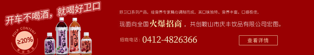 鞍山市慶豐飲品有限公司始建于1992年,是專業(yè)從事山楂汁飲料研發(fā)、生產(chǎn)及銷售的產(chǎn)銷一體化大型民營(yíng)企業(yè)。 工廠位于遼寧中部的遼河三角洲腹地,地處環(huán)渤海經(jīng)濟(jì)區(qū)圈鞍山市臺(tái)安工業(yè)園區(qū)內(nèi)(京沈高速公路臺(tái)安出口西200米處),擁有占地面積23000多平方米的花園式飲料生產(chǎn)基地,公司資金實(shí)力雄厚,引進(jìn)多條國(guó)內(nèi)外先進(jìn)的飲料自動(dòng)化生產(chǎn)線,擁有高級(jí)技術(shù)人才及生產(chǎn)工人近百名,是東北地區(qū)專業(yè)山楂汁研發(fā)生產(chǎn)型企業(yè),主要生產(chǎn)“好衛(wèi)口”山楂汁系列,及“好衛(wèi)口”橙汁系列,藍(lán)莓汁系列,蘋(píng)果醋系列,4大系列飲品近二十余種的果汁飲料